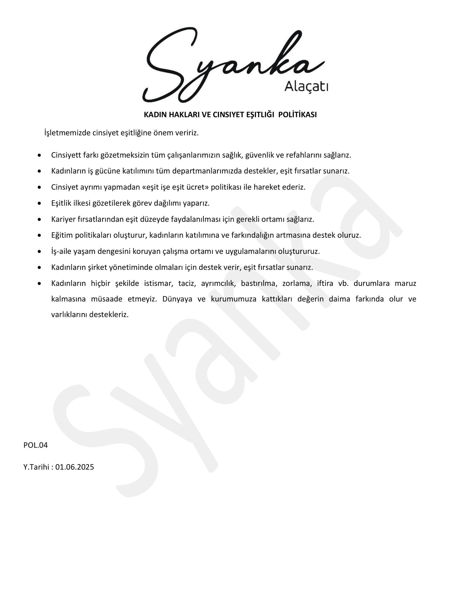 Sürdürülebilirlik Raporları CEVRE KORUMA VE ATIK YONETIMI POLITIKASI COCUK HAKLARI POLITIKASI ENERJI VERIMLILIGI POLITIKASI KADIN HAKLARI VE CINSIYET ESITLIGI POLITIKASI SURDURULEBILIR SATIN ALMA POLITIKASI ERİŞEBİLİKLİK POLİTİKASI